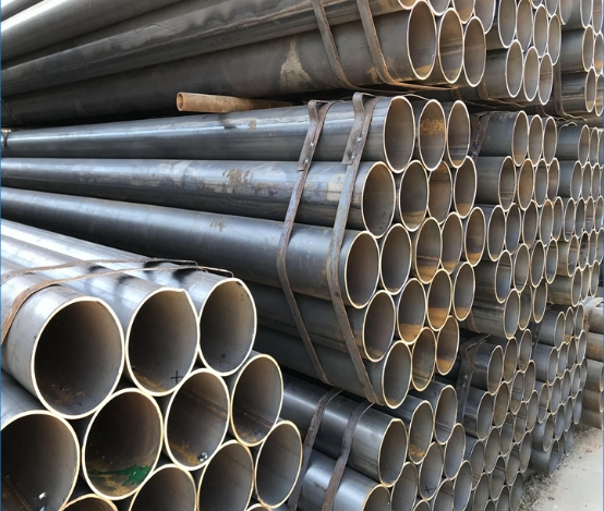 焊接钢管也称焊管,是用钢板或带钢经过卷曲成型后焊接制成的钢管,一般定尺6米。焊接钢管生产工艺简单,生产效率高,品种规格多,设备投资少,但一般强度低于无缝钢管。